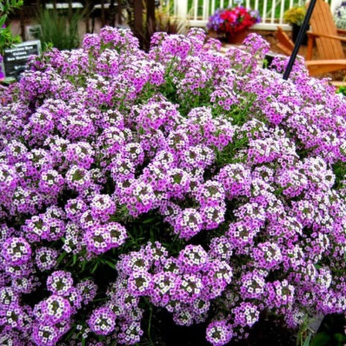Las semillas de Alyssum Royal Carpet Púrpura (Lobularia maritima) producen una planta rastrera y tapizante con pequeñas flores de color púrpura intenso y aroma dulce. Ideal para bordes, canteros, macetas y jardineras, es muy utilizada como cubresuelo por su bajo porte y rápida cobertura. Atrae polinizadores y es excelente para combinar con flores más altas.