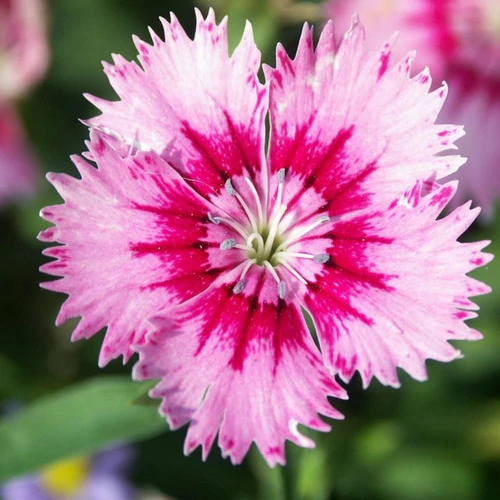 Las semillas de Clavelina de la China (Dianthus chinensis) producen una planta ornamental de floración abundante, con flores bicolores en tonos rojo, rosa, blanco y púrpura. Su crecimiento compacto y follaje denso la hacen ideal para bordes de jardín, macetas y rocallas. Es resistente y fácil de cultivar, con una floración prolongada.