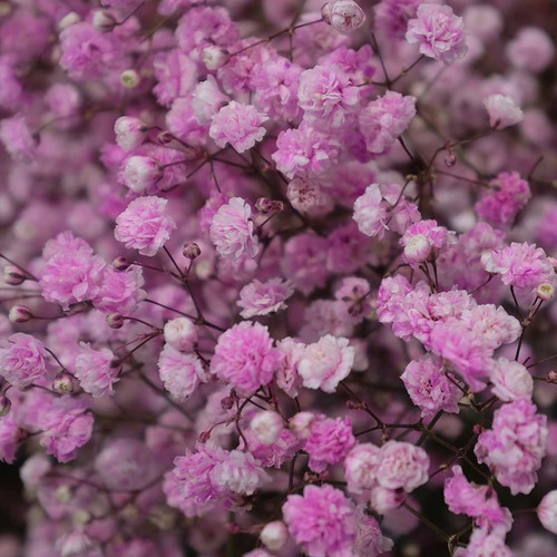 Las semillas de Gypsophila Rosa roducen delicadas flores rosas en forma de nube, ideales para jardines, arreglos florales y ramos. Esta planta anual o perenne, según el clima, alcanza una altura de 50 a 90 cm, formando matas ligeras y ramificadas. Se usa comúnmente como flor de relleno en bouquets y decoraciones.
